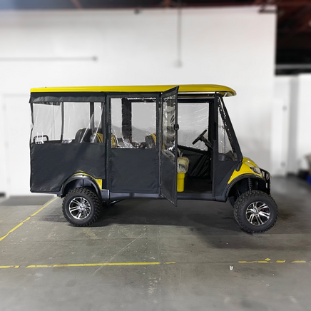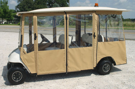 DoorWorks 6- passenger models are available in Sunbrella and are made for popular models including Advanced EV, Club Car, Evolution, EZGO, ICON, Yamaha and more.