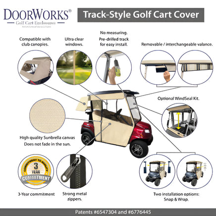 Made for 2, 4 and 6 Passenger Carts. DoorWorks is best Track-Style cover on the market and is designed for almost all makes.