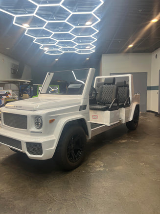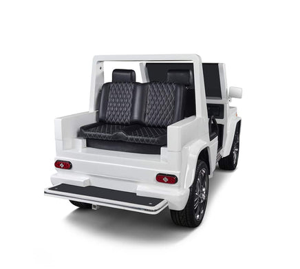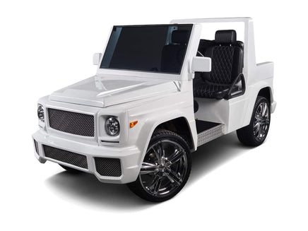 If you are a fan of the G Wagon, you will love the "E Wagon"! Made to perfection mimicking the bells and whistles of the Mercedes G Wagon in class, style, and functionality, with the only difference being size! Cruise around your local golf course or your residential community with the Sleek and Sexy E Wagon for sure catching all eyes! Equipped with a 48V 105AH Lithium Ion battery so you have the most upgraded battery system on the market!